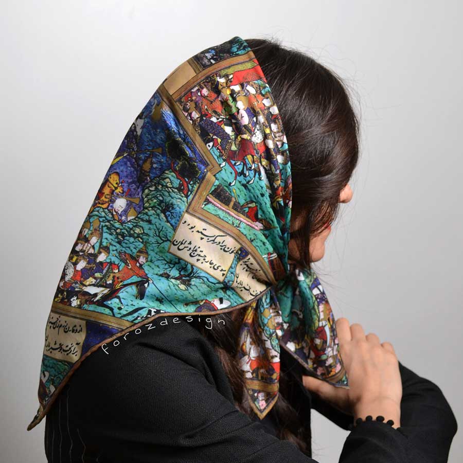 بیبی اسکارف نخی و ابریشمی با نگاره ای از شاهنامه در مکتب هرات