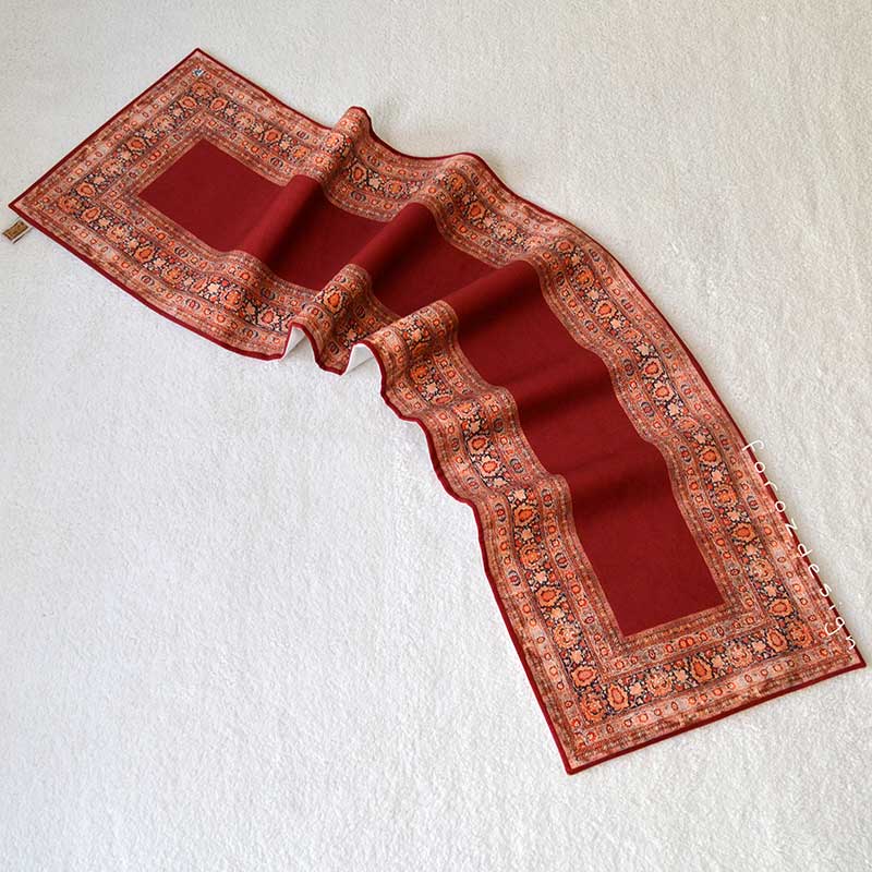 رانر آستر دوزی شده با طرح فرش قدیمی به رنگ عنابی
