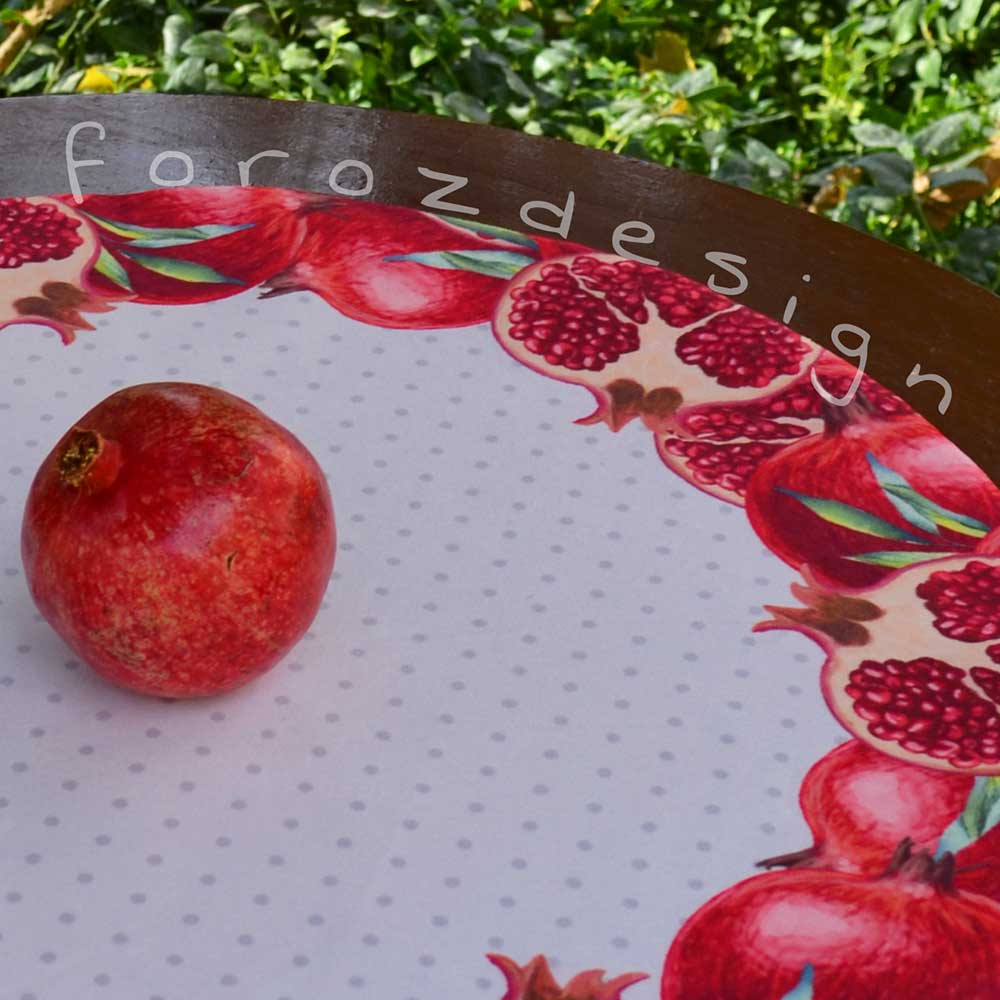 رومیزی گرد با طرح انار مناسب برای شب یلدا