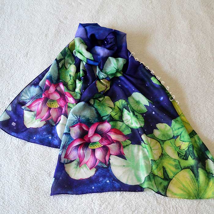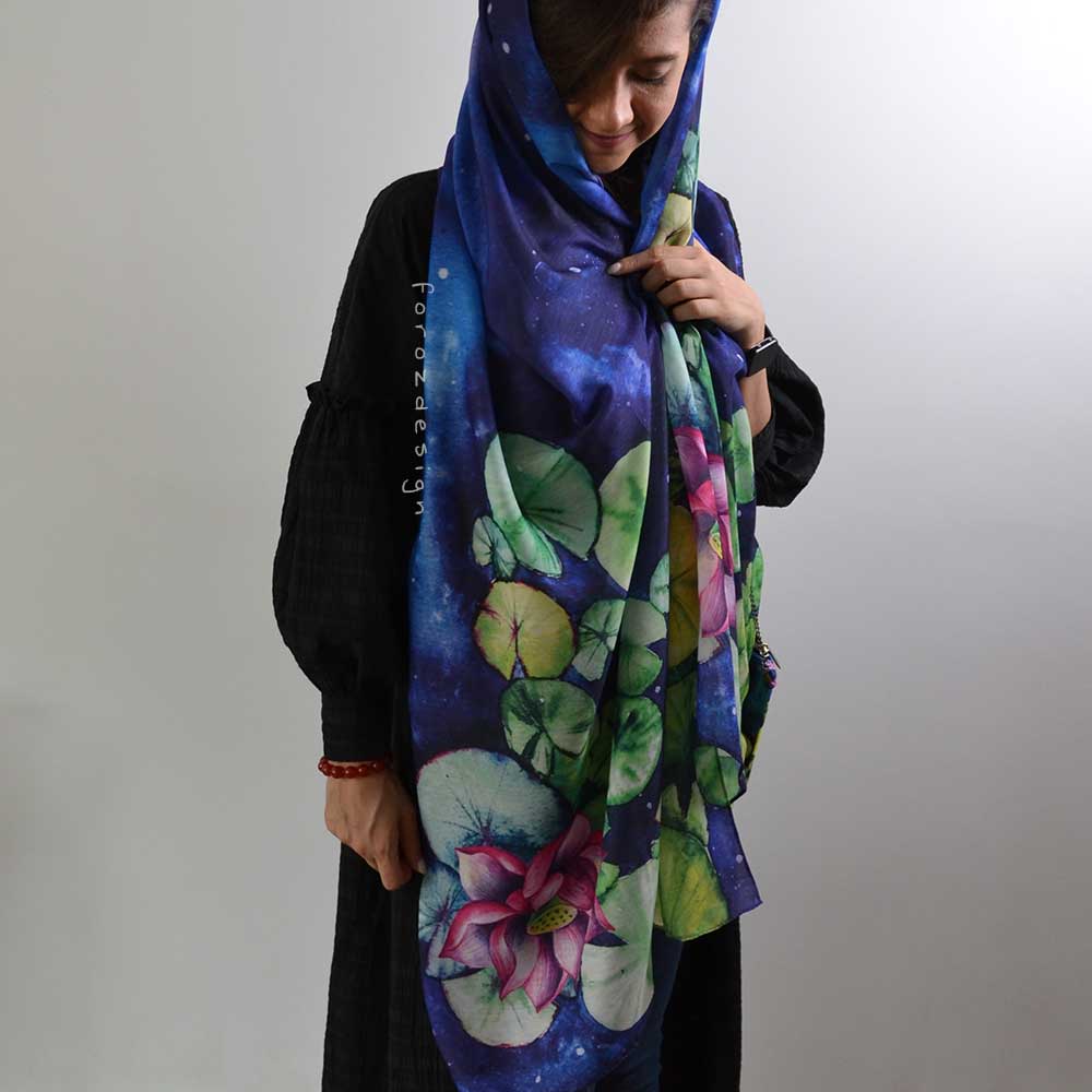 شال نخی با طرح نیلوفر آبی ، نام طرح : نیل