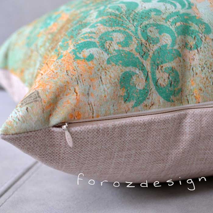 کاور کوسن با طرح وینتیج و داماسک فیروزه ای